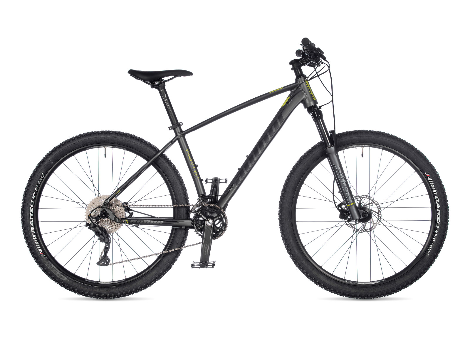 Бренд AUTHOR Модель TRACTION Год 2021 Материал рамы Алюминий (Alloy) Рама/описание double butted hydroformed alloy 6061 27.5" Тип вилки Амортизационная (воздух) Вилка/регулировки RST Aerial 27.5 15 TRL air, remote lock out (100 mm) Спицы black stainless steel 2.0 mm Обода AUTHOR Xenon TRC 27.5 32 holes Покрышки VITTORIA Barzo foldable 27.5" × 2.25" Тормоза Дисковые гидравлические Грипсы AUTHOR Pro Lock Тормоз TEKTRO Gemini disc hydraulic (6" rotors) Тормозные ручки TEKTRO Gemini Уровень оборудования Продвинутый Шифтеры SHIMANO Deore (20) Переключатель передний SHIMANO Deore (34.9) Переключатель задний SHIMANO Deore Цепь KMC X10 Каретка SHIMANO BB-52 BB unit Шатуны SHIMANO M4100-2 36-26 teeth 170 / 175 mm cranks Количество скоростей 20 Руль AUTHOR 9° 680 / 700 mm Рулевая колонка AUTHOR Integrated 1.5" tapered Вынос AUTHOR alloy Седло AUTHOR Navigator Подседельный штырь AUTHOR alloy (31.6) Педали AUTHOR alloy Втулка передняя AUTHOR Radon 32 holes Вес 12,8 kg / 17" Втулка задняя AUTHOR Radon 32 holes -